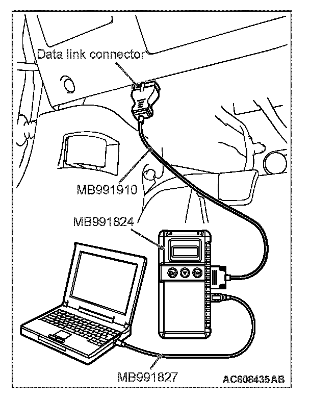 1. Connect scan tool MB991958 to the data link connector.