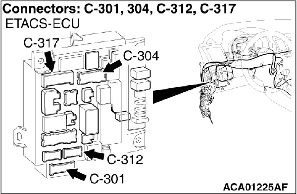 (1)Disconnect ETACS-ECU connector C-312 measure the voltage available at the wiring harness side of the connector.