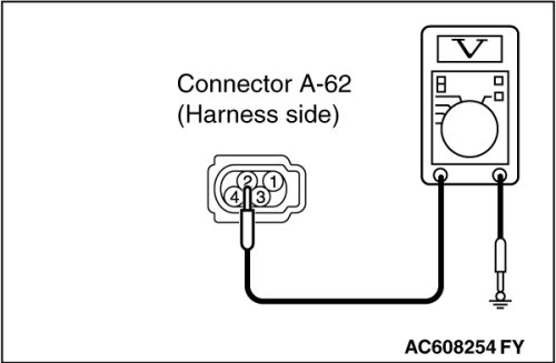 (2)Measure the voltage between theft-alarm siren connector A-62 terminal 2 and ground.