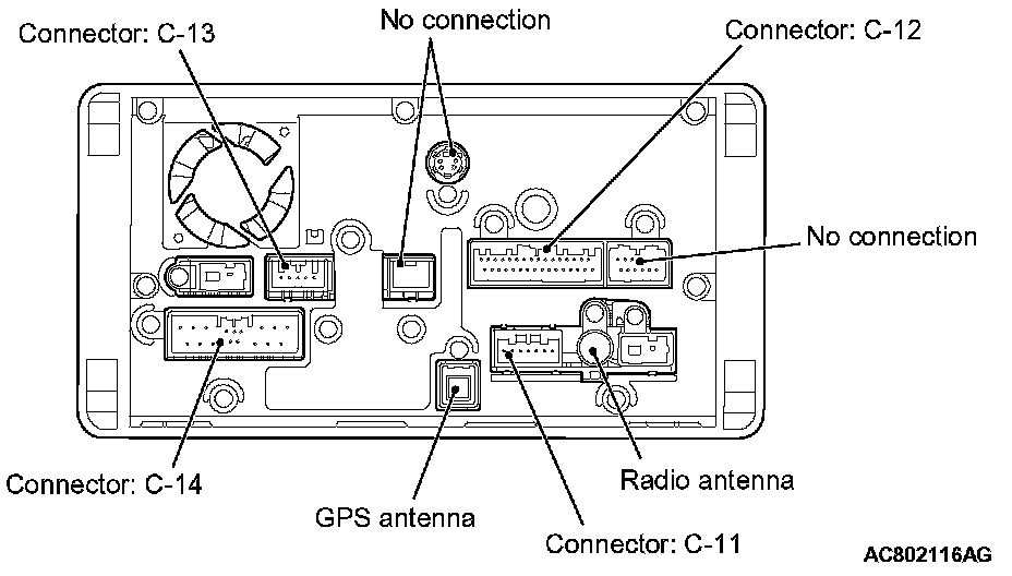 The connectors, antenna and cables connected to the multivision display are shown in the figure.