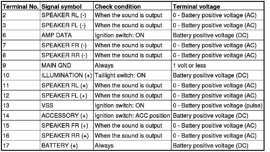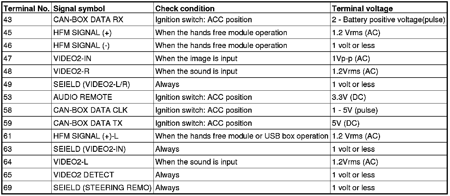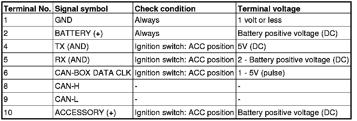 Pinout Values and Diagnostic Parameters