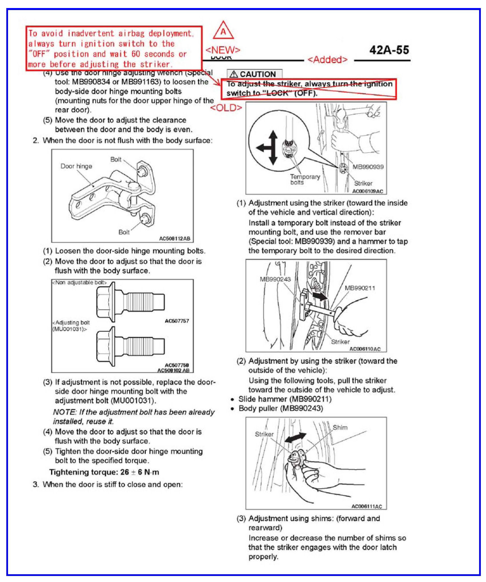 DOOR ADJUSTMENT UPDATE FOR VEHICLES WITH