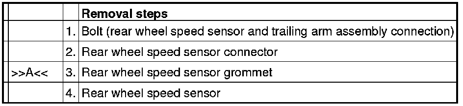 As for removal and installation of the rear wheel speed sensor, refer to Wheel Speed Sensor Removal and Installation Anti-Lock Braking System (ABS).