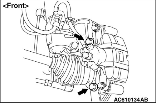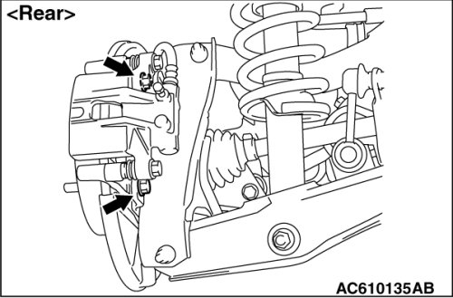 Refer to Removal and Installation [Front ], Removal and Installation [Except Ralliart] [Rear (Except RALLIART)] or Removal and Installation [Ralliart] [Rear (RALLIART)].