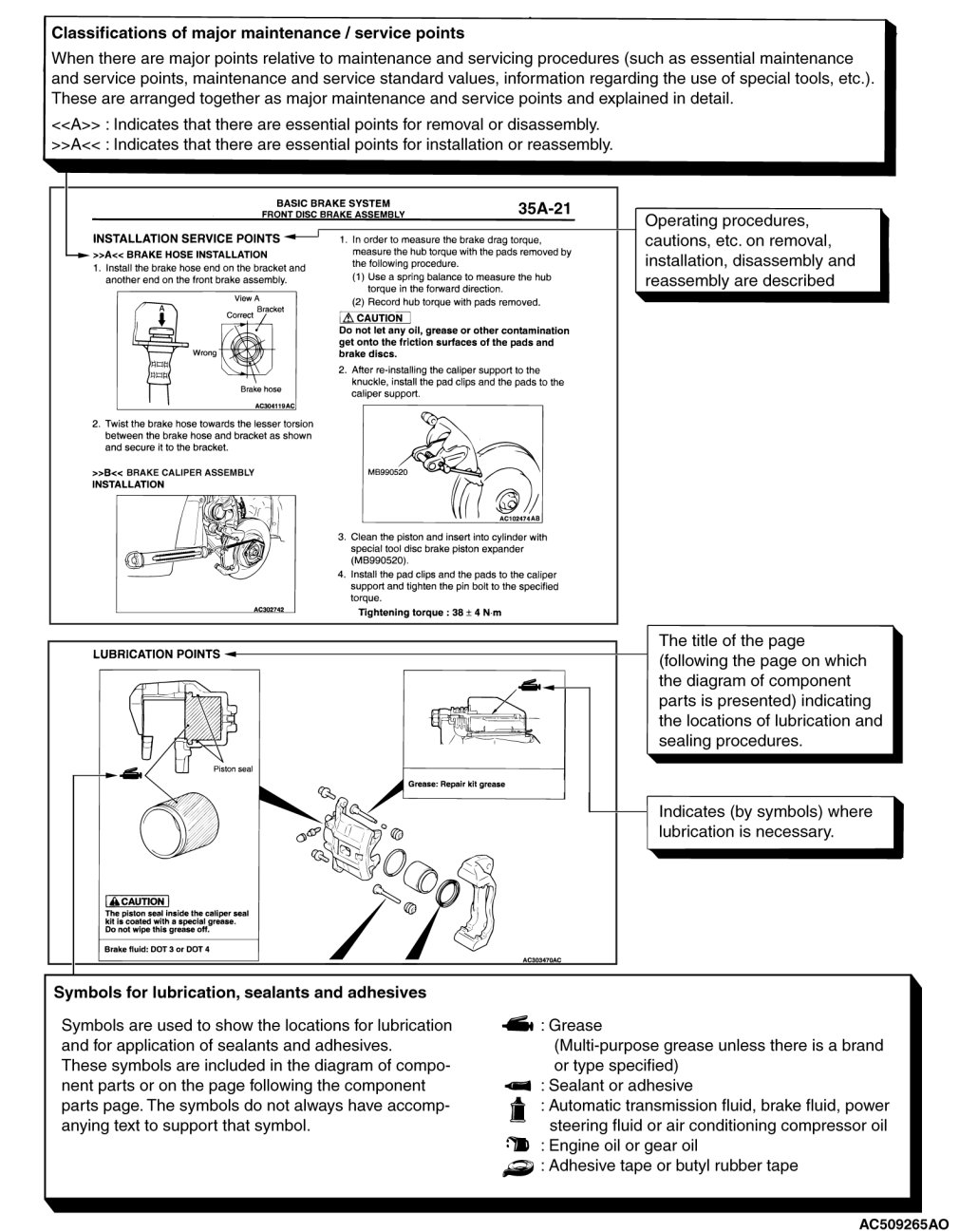 "ON-VEHICLE SERVICE" has procedures for performing inspections and adjustments of particularly important components. These procedures are done with regard to maintenance and servicing, but other inspections (looseness, play, cracking, damage, etc.) must also be performed.