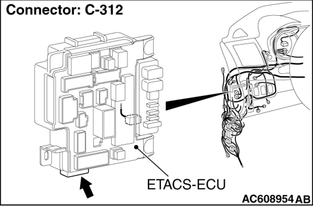 (3)Measure the terminal voltage between ETACS-ECU connector C-312 terminal number 2 and body ground, between ETACS-ECU connector C-312 terminal number 8 and body ground.