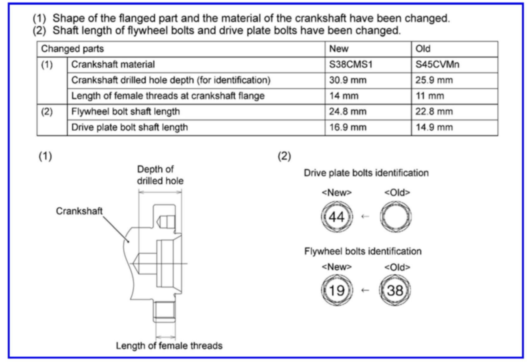 - New length of flywheel bolts and drive plate bolts