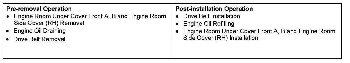 2. Tie the removed A/C compressor and clutch assembly with a string at a position where they will not interfere with the removal and installation of engine oil pan.