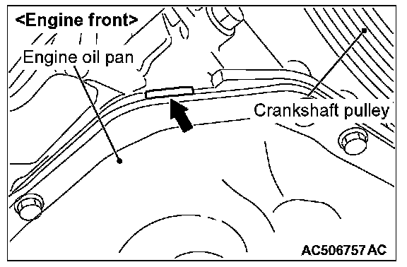 2. Insert special tool MD998727 from the engine oil pan removal groove of the cylinder block assembly.