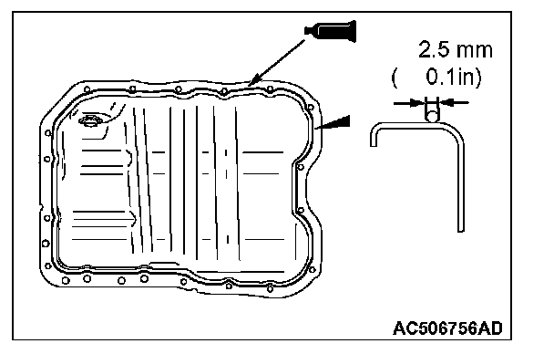 ^ Check the engine oil pan sealant-coated surface for damage and deformation.