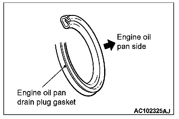 Replace the engine oil pan drain plug gasket with a new one. Install the new engine oil pan drain plug gasket in the direction shown in the illustration.