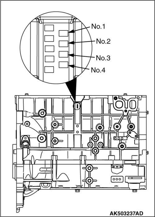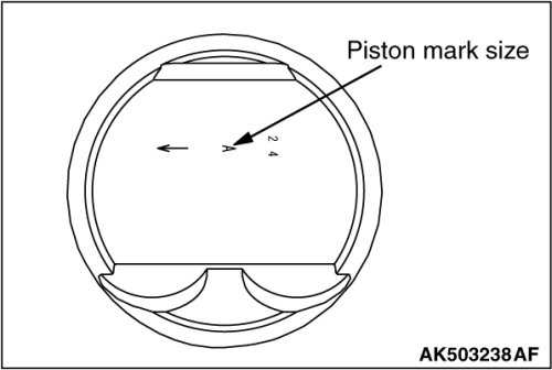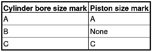 1. When replacing a piston, check the cylinder bore size mark stamped on the illustrated position of the cylinder block and select a corresponding piston from the table below.