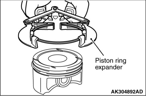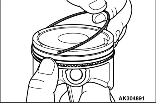 1. Assemble the spacer of the oil ring into the piston ring groove. Then, assemble the upper side rail, and after this assemble the lower side rail.