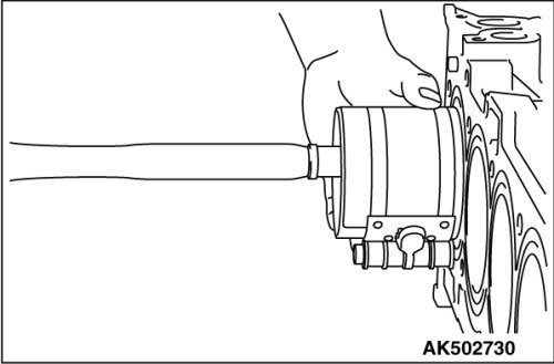 1. Insert the push rod into the piston pin from the front mark side of the piston top surface, and attach special tool MB991659.