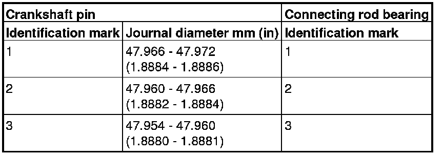 1. When replacing a connecting rod bearing, select the bearing corresponding to the crankshaft pin outside diameter according to the crankshaft pin identification in the table below.