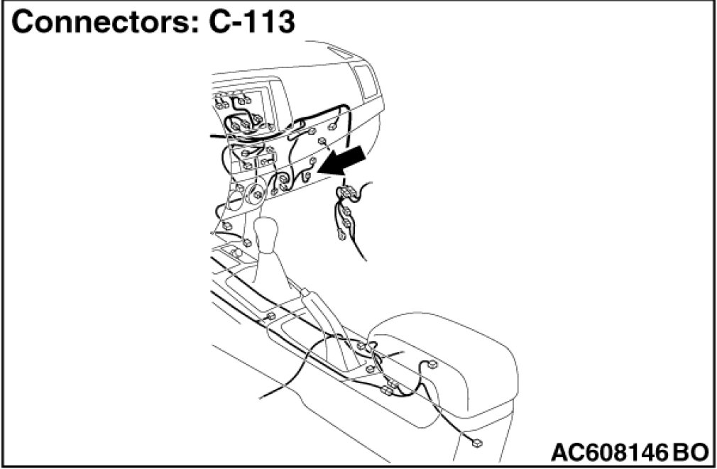 STEP 5. Check blower relay connector C-113 for loose, corroded or damaged terminals, or terminals pushed back in the connector.