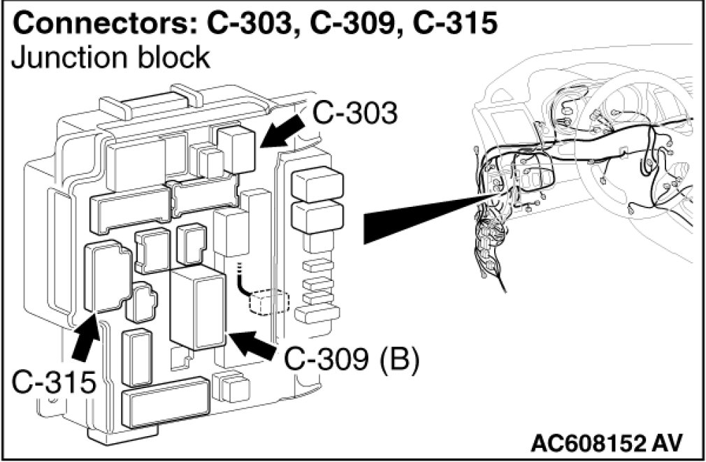 Also check ETACS-ECU connector C-309 for loose, corroded, or damaged terminals, or terminals pushed back in the connector. If ETACS-ECU connector C-309 is damaged, repair or replace the connector as described in Harness Connector Inspection Harness Connector Inspection.