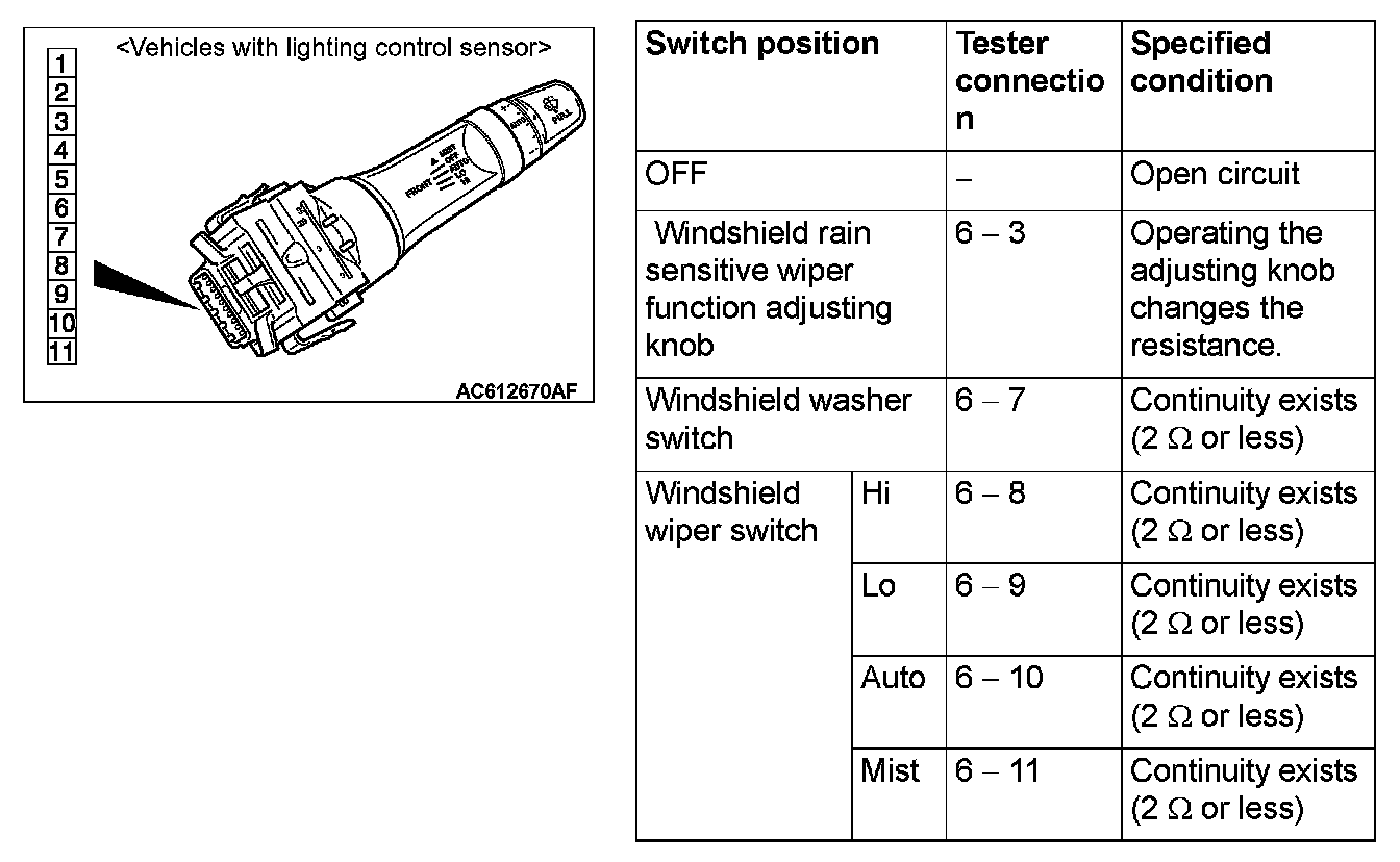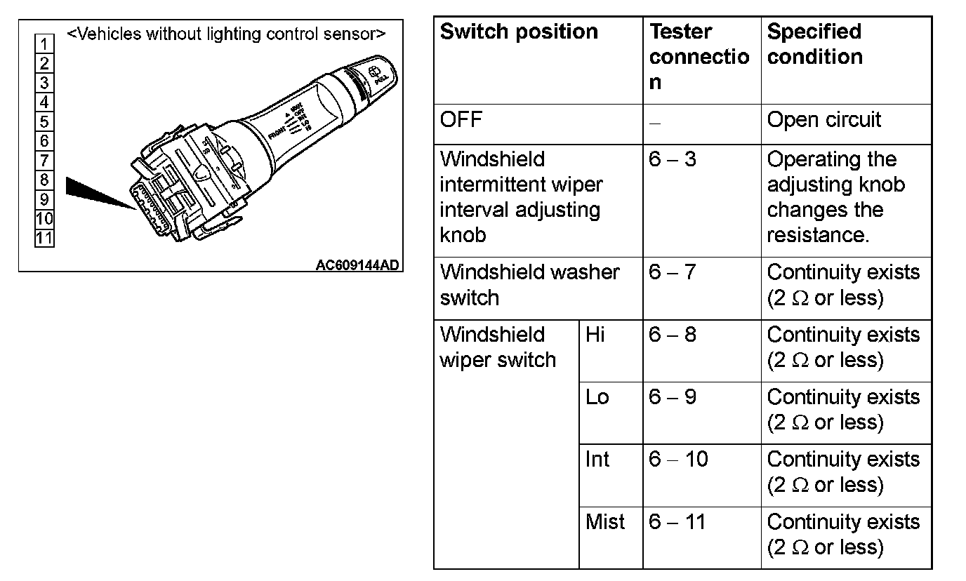 WIPER/WASHER SWITCH CONTINUITY CHECK