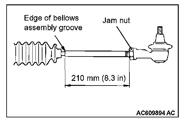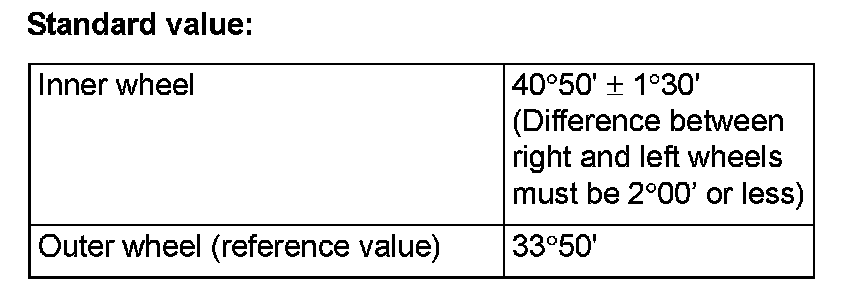 3. If not within the standard value, adjust the tie-rods (right and left), and repeat Steps 1 and 2.