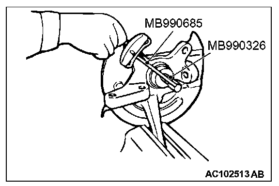 3. Use Special tools MB990326, MB990685 to measure the hub rotation starting torque.
