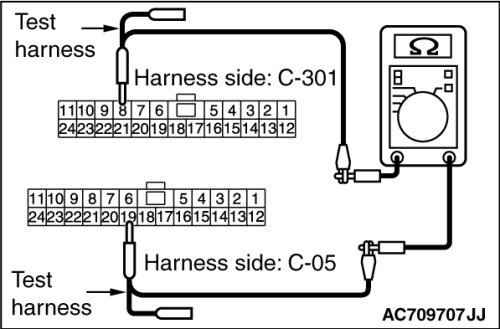 (3)Check the wiring harness between joint connector (CAN2) C-05 (terminal 19) and ETACS-ECU connector C-301 (terminal 8)