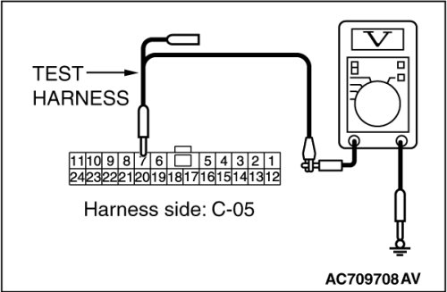 STEP 4. Check the wiring harness between joint connector (CAN2) C-05 and ETACS-ECU connector C-301 for a short to power supply. Measure the voltage at joint connector (CAN2) C-05.