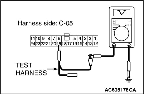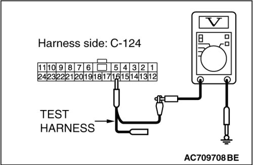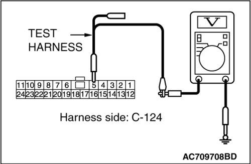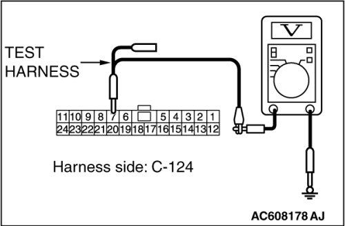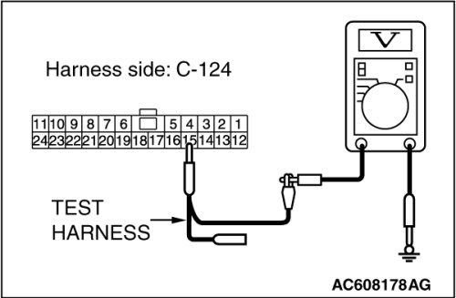 STEP 7. Check the wiring harness between joint connector (CAN3) C-124 and ECM connector B-109 [except RALLIART] for a short to power supply. Measure the voltage at joint connector (CAN3) C-124.