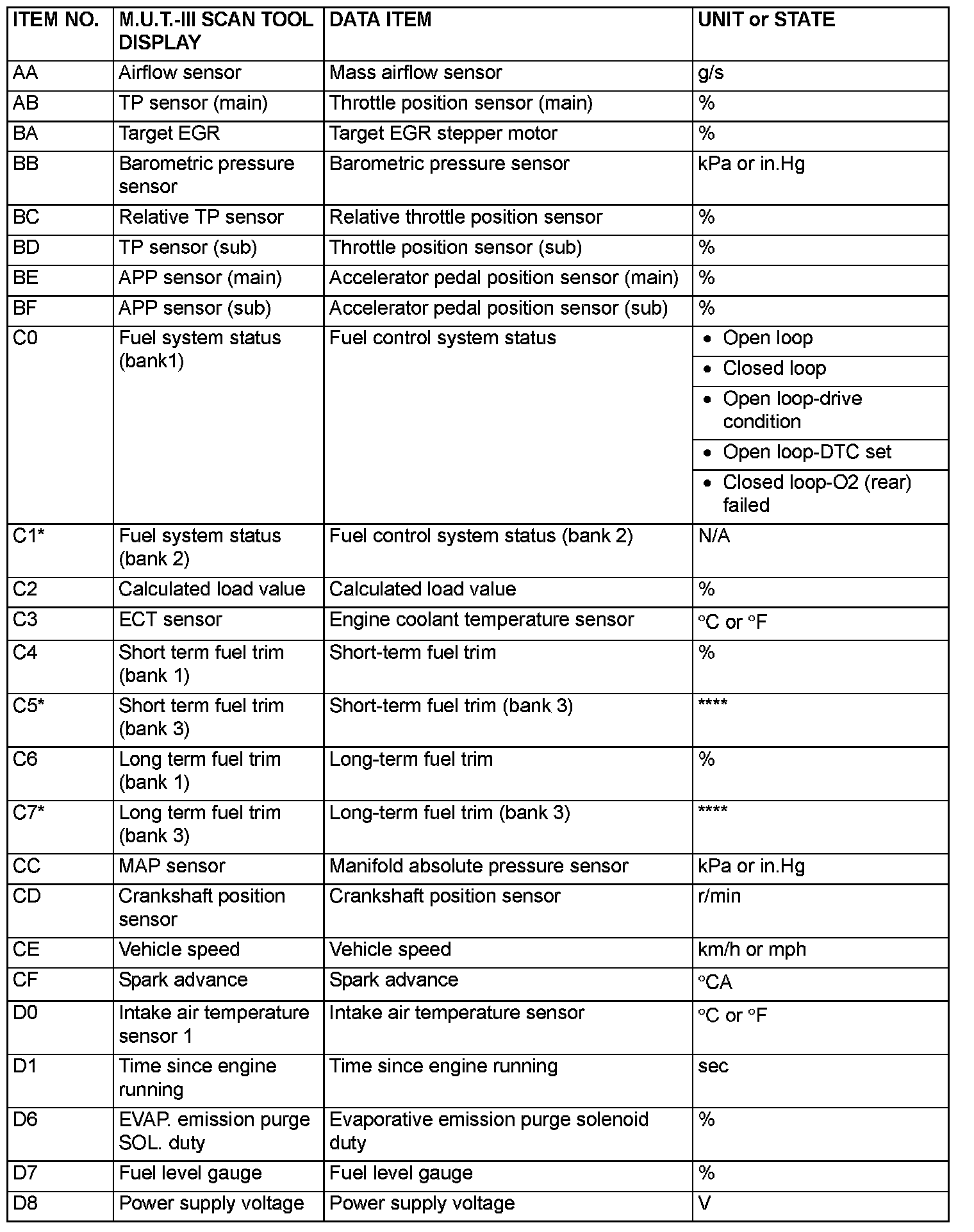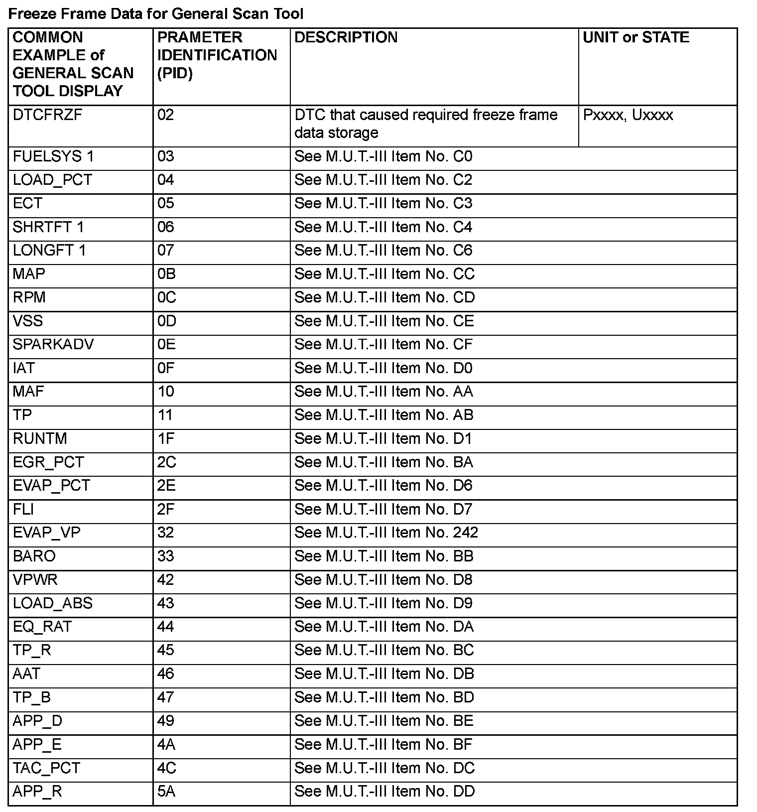 Freeze Frame Data (OBD) for M.U.T.-III