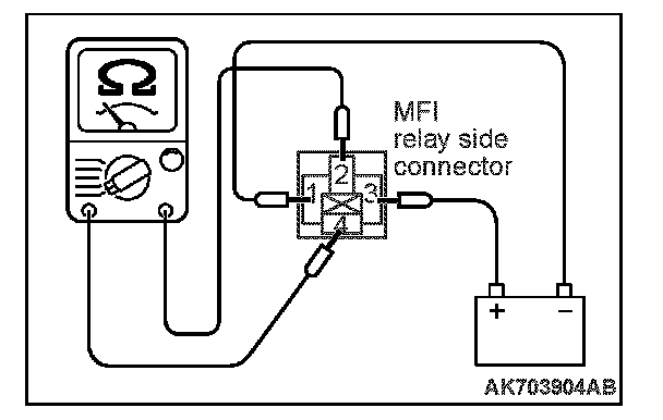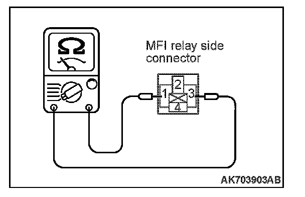 2. Check for continuity between the MFI relay terminals No. 1 and No. 3.