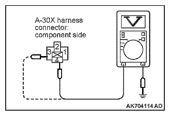 STEP 3. Measure the power supply voltage at MFI relay harness side connector A-30X.