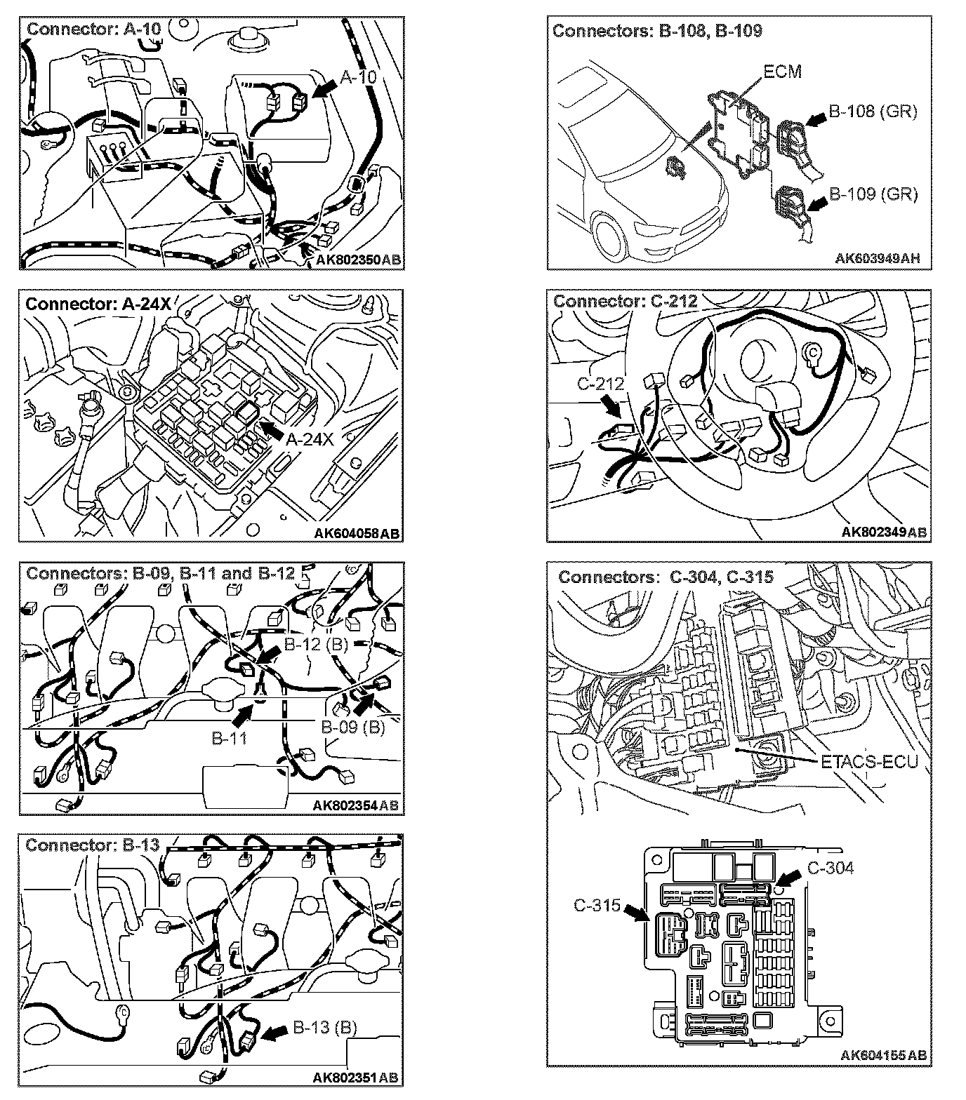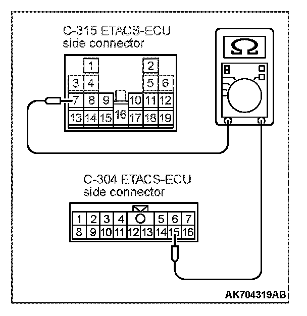 STEP 8. Check the continuity at ETACS-ECU side connector C-304 and C-315.