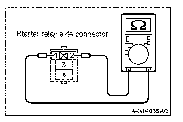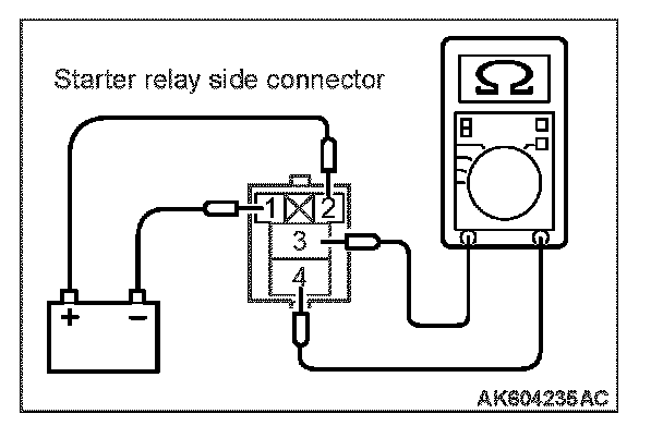 2. Check for continuity between the starter relay terminals No. 1 and No. 2.