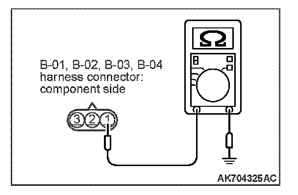 1. Disconnect the connectors B-01, B-02, B-03 and B-04 and measure at the harness side.