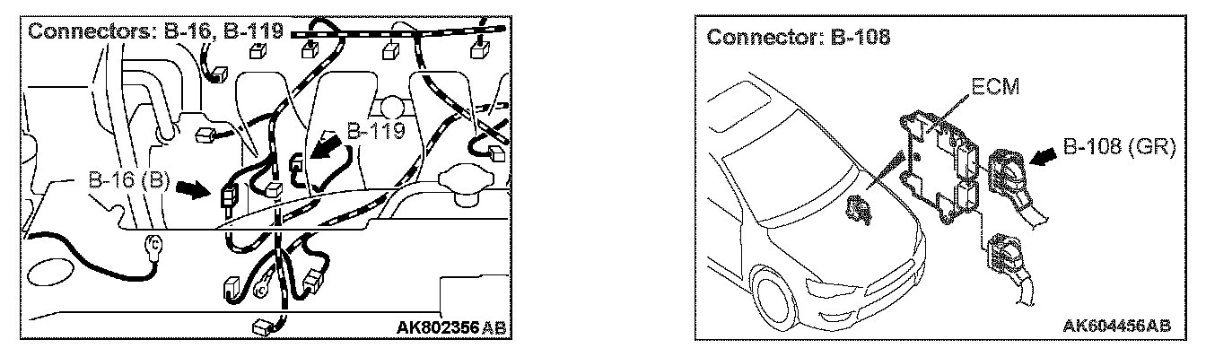 1. Disconnect the connector B-119 and measure at the harness side.