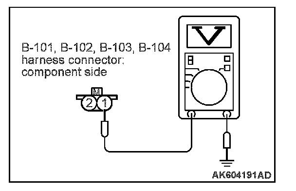 1. Disconnect the connectors B-101, B-102, B-103 and B-104 and measure at the harness side.