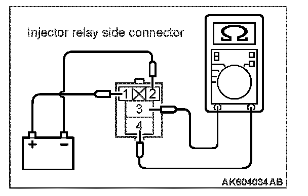 2. Check for continuity between the injector relay terminal No. 1 and No. 2.