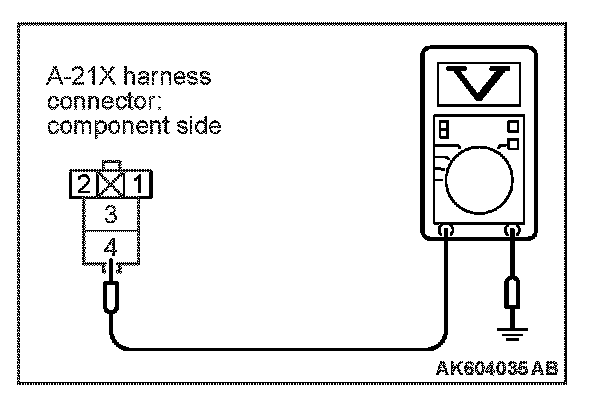 STEP 8. Measure the power supply voltage at injector relay harness side connector A-21X.