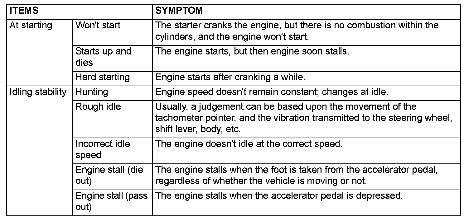 PROBLEM SYMPTOMS TABLE (FOR YOUR INFORMATION)
