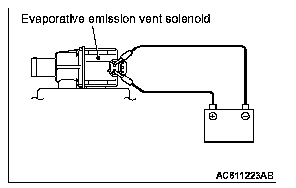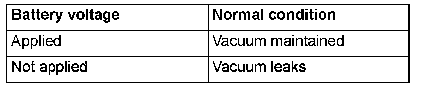 3. Check air tightness by applying a vacuum with voltage applied directly from the battery to the evaporative emission ventilation solenoid and without applying voltage.