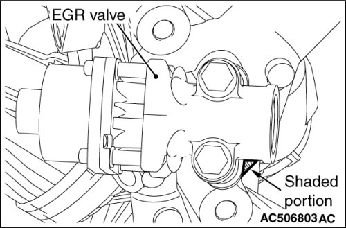 Install the EGR valve gasket so that its shaded portion is set as shown in the figure. Be sure to check which side of the gasket faces outside.