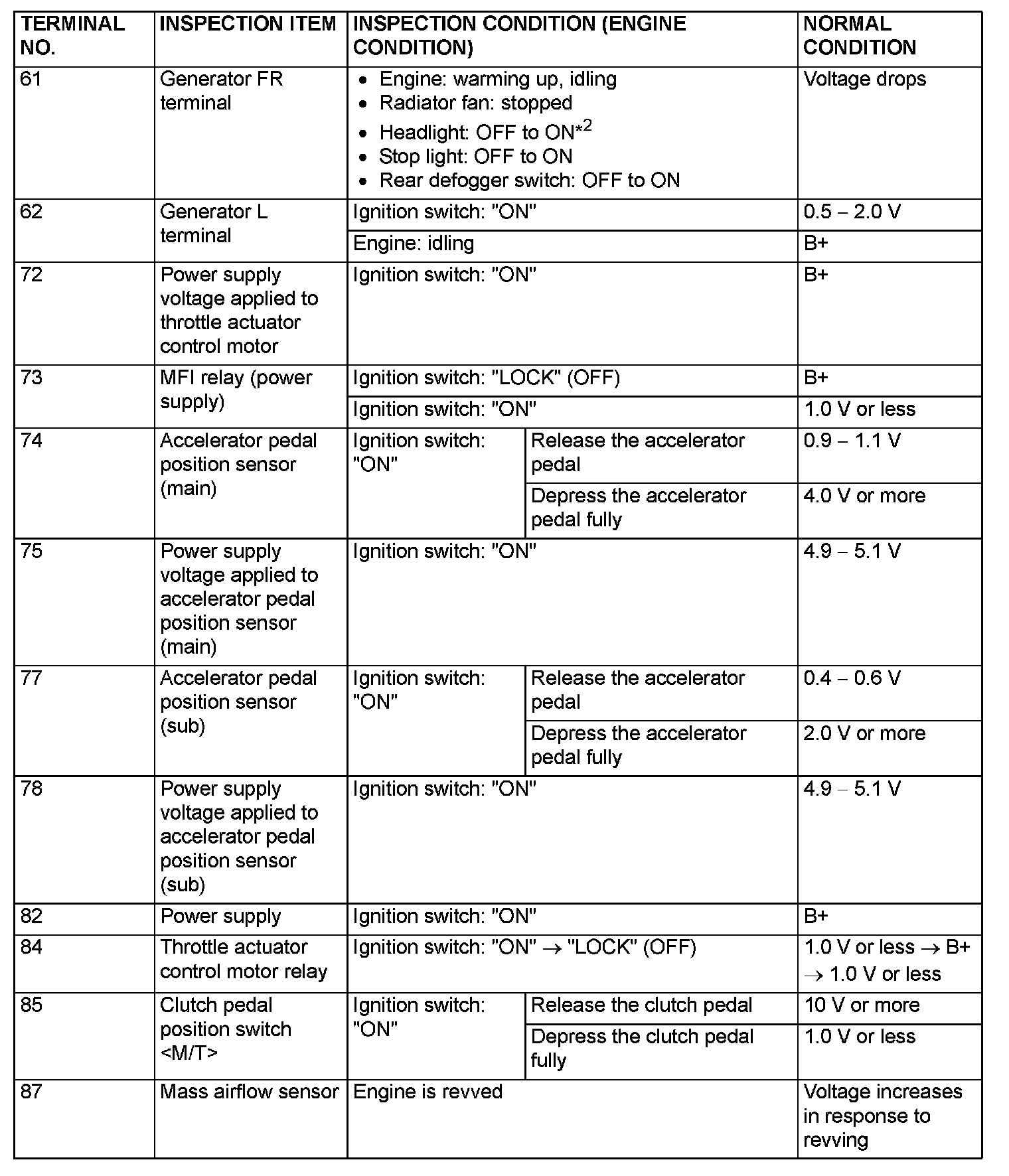 - *2: Vehicles for Canada, the headlight, taillight, etc. remain lit even when the lighting switch is in "OFF" position but this is no problem for checks.