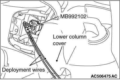 6. Connect the special tool MB992102 to the driver's air bag module, and then pull out the deployment wire to outside the vehicle.