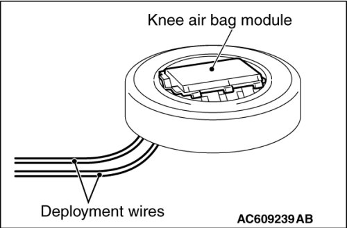 Once disconnected, both electrodes of the knee air bag module connector short automatically to prevent accidental deployment caused by static etc. Still, in consideration of possible accidental deployment, store the air bag module on flat place with deployment surface facing up. Do not put anything on it.