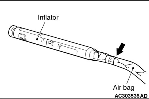 3. Cut the inflator from the air bag as shown in the figure using a cutter or a similar tool.
