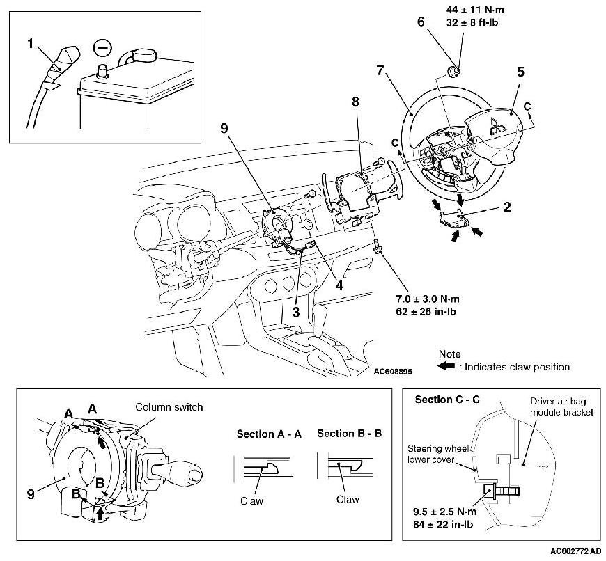- Never attempt to disassemble or repair the air bag modules or clock spring. If faulty, replace it.