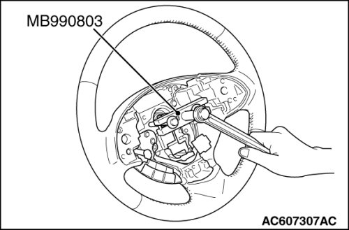 Use special tool MB990803 to remove the steering wheel.