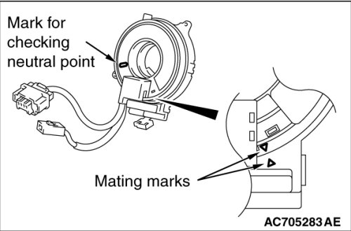 - When aligning the clock spring neutral position mark, perform with the clock spring independently. If performed with the steering wheel sensor installed, the steering wheel sensor may be damaged.