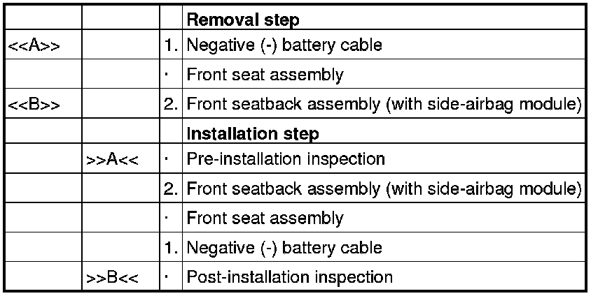 - When replacing the side-air bag module, replace the front seatback assembly.