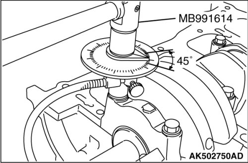 When the tightening angle is larger than the specified tightening angle, remove the bolt to start from the beginning again according to the procedure.