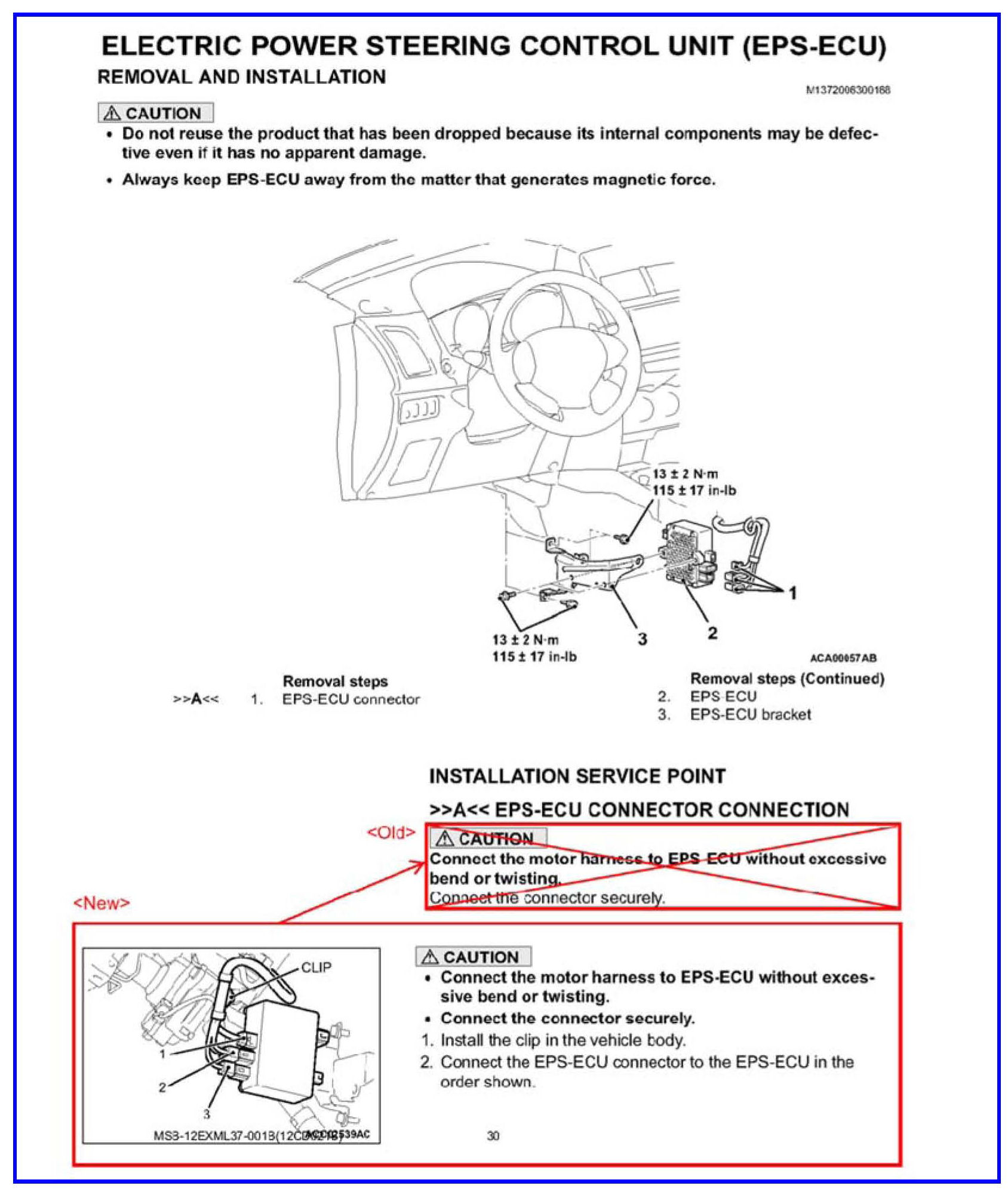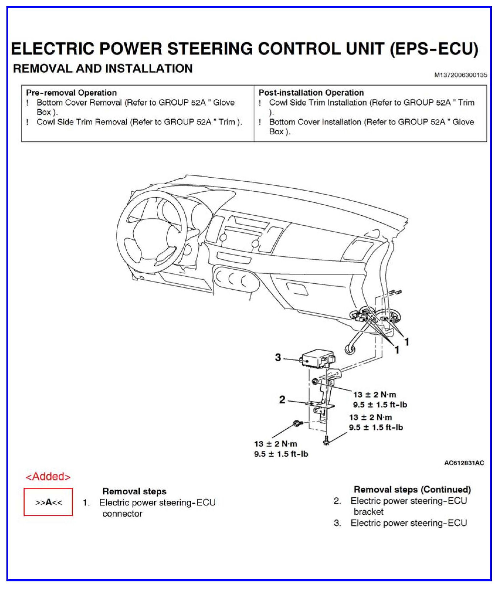 2011-2012 Lancer/Lancer Sportback Service Manual: Group 37B - Electric Power Steering (EPS) >> Electric Power Steering Control Unit (EPS-ECU) >> Removal and Installation